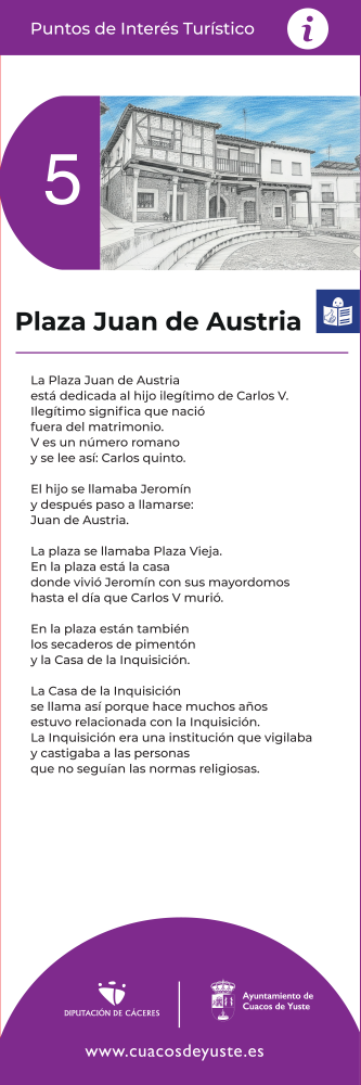 En la plaza está la casa donde vivió Jeromín con sus mayordomos hasta el día que Carlos V murió.